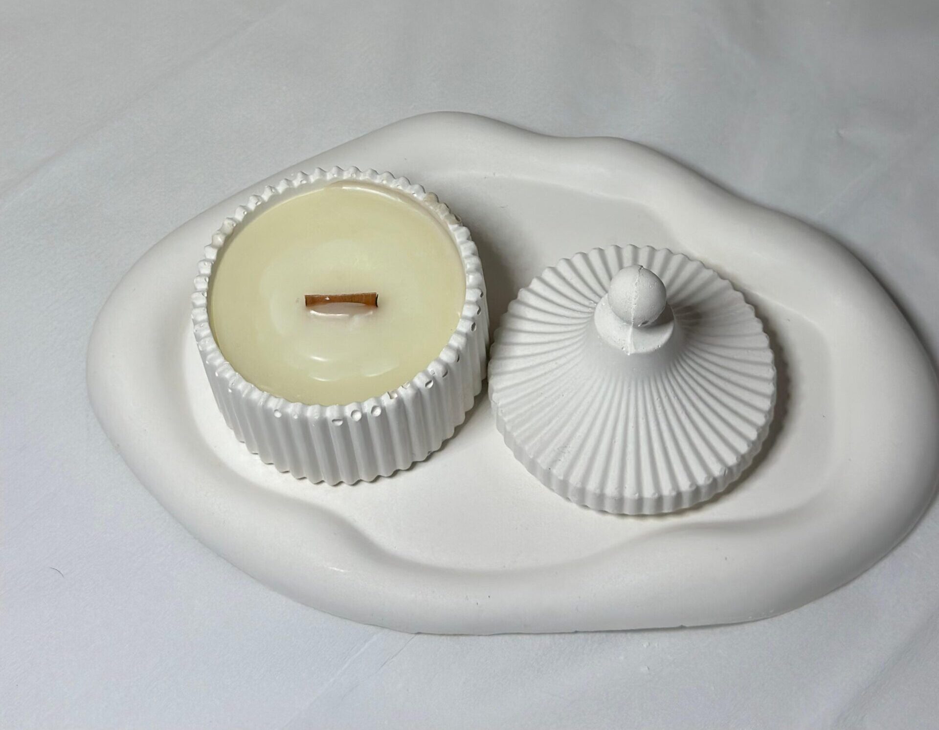 This is a wavy white decorative tray characterized by its fluid, asymmetrical design. The product’s organic, irregular shape offers a modern, minimalist aesthetic suitable for various settings. It is ideal for use as a functional centerpiece on a coffee table, a storage solution for jewelry or toiletries on a vanity, or a catch-all for small items.